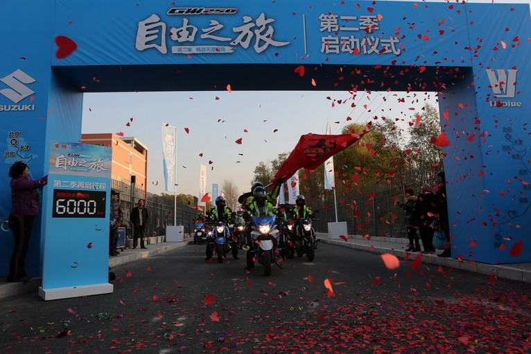 下午14:45分,儀式正式開始,豪爵商務有限公司經理王亮先生致辭。GW250“自由之旅”第二季,除了帶領大家挑戰嚴寒,從北京出發,沿中國此次GW250自由之旅“暢游天涯海角”將由北京出發,沿海岸線南下,跨越齊魯大地,品味江南詩境,尋跡海上絲路,品嘗粵系美食,最終抵達被稱作“中國的馬爾代夫”的三亞。