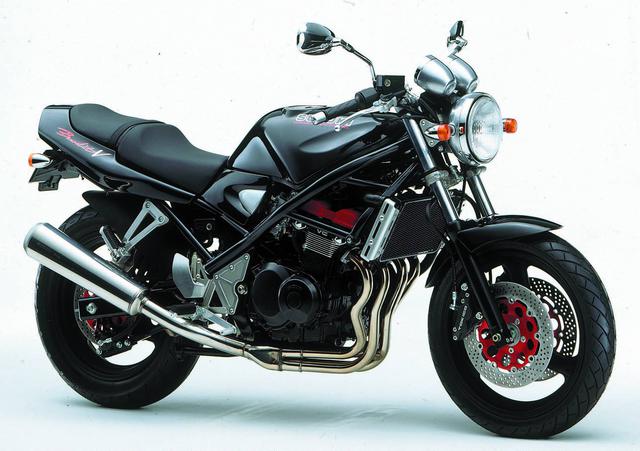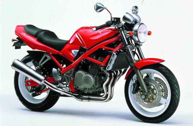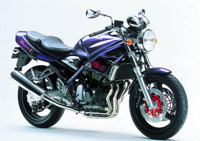 第一個亮相的這臺就是生產于1989年6月的盜匪400,最大馬力可達59PS/12000rpm,它比當時其他競爭對手的馬力都大,最大扭矩39N·m/10500rpm,其高轉時的扭矩輸出充滿激情,配合僅為168kg的車重,這臺盜匪400成為當時最快的跑街利器。即便以現在的眼光來看,這臺車也是一臺十分優秀的街車產品。此車當年的售價為59.5萬日元,折合人民幣≈3.1萬元。