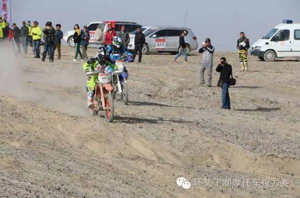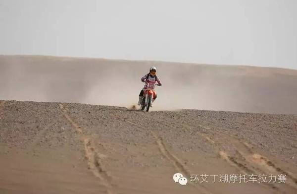 10月18日,2016中國新疆·吐魯番環艾丁湖(國際)摩托車拉力賽進入第三賽段(簡稱SS3),共有69位車手參加比賽,第三賽段比賽地點位于鄯善縣著名的海市蜃樓景區,圍繞庫木塔格沙漠行駛,最后到達鄯善縣迪卡爾鄉,全程106公里,但是包含沙礫灘和“搓板路”的賽道,仍然給車手們造成了不小的難度。其難度集中體現在“搓板路”上對車輛和車速的把控,從而使車手們之間也拉開了差距。對于小排量的賽車是一種考驗。