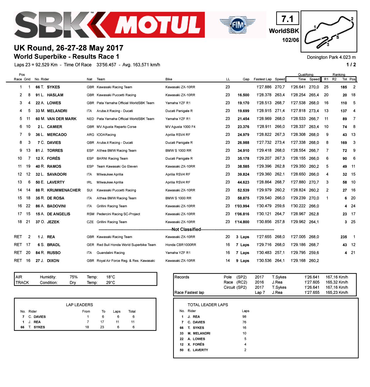 2017' WSBK 第七站的比賽,五月 27、28 號(hào)在英國(guó)多靈頓公園賽車(chē)場(chǎng)(Donington Park)舉行。