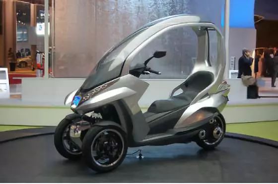 2008年的巴黎博覽會上,標致隆重推HYmotion3倒三輪摩托。這款劃時代的產品,由標致汽車和標致摩托聯合研發,它融合了汽車和踏板摩托車的特點,不僅具備較高的穩定性和操控性,也可以像兩輪踏板車那樣輕松穿越擁擠的城市街道。借鑒標致RCZ跑車,HYmotion3倒三輪配備的帶骨架“氣泡”頂棚,比一般頂棚更寬,對駕乘人員包覆性也更強,可以有效避免了日曬雨淋和保護人身安全。