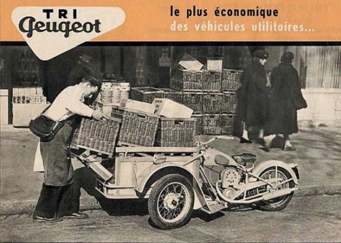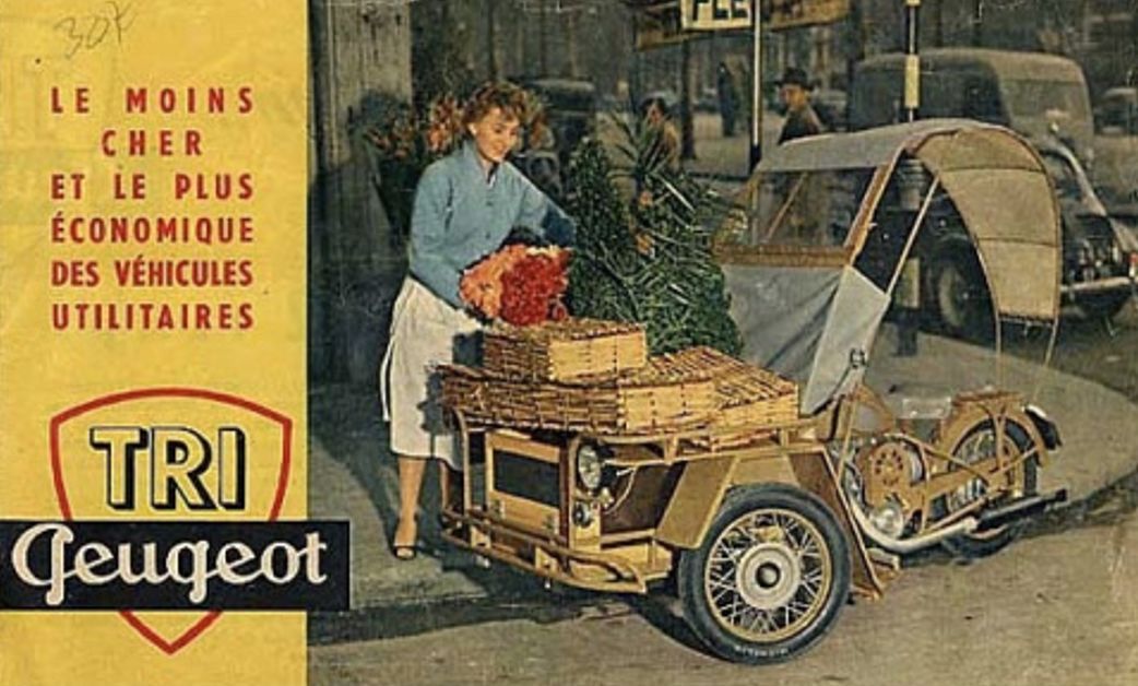第二次世界大戰結束后(1939-1945年),法國國內生產恢復正常。標致對戰前熱銷的53TN和53TM倒三輪進行了改形,派生出小改款Triporteur 54TN,受到了市場的極大歡迎。