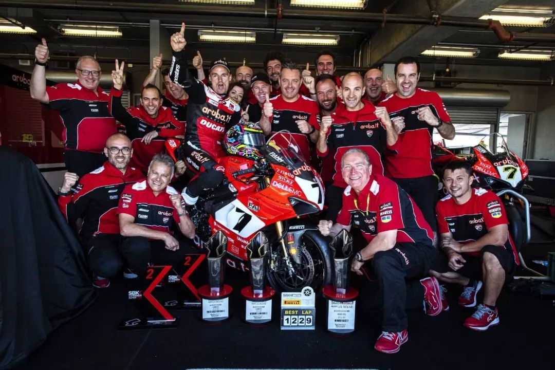 WSB 級別今年的賽程是 25 圈、合共約 91.5 公里。第一節比賽,起步之后、雷亞(Jonathan Rea)帶前,杜卡迪工廠車隊的兩位車手戴維斯(Chaz Davies)、捌弟(Alvaro Bautista,巴迪斯塔),以及 Kawasaki 衛星車隊的拉格里奧盧(Toprak Razgatlioglu)隨后跟進,拉開了較量的序幕。