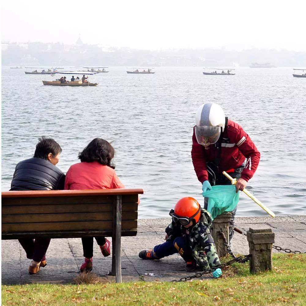 在少年宮廣場集合后,全體佩戴全覆式頭盔,每人領取一次性手套一只,每兩人領取垃圾收集袋一個。沿北山路繞西湖而行,由西泠橋進入白堤,至浙江博物館門口集結;合影后沿白堤至一公園水泵房解散。沿途發現地面垃圾,請參與成員及時拾取,收集入自帶垃圾袋或沿途垃圾桶中。手執垃圾袋,活動結束后由專人統一收集、統一拋棄;一次性手套也請于統一收集時棄入垃圾袋內。沿途發現需要幫助的群眾,應積極予以幫助,如幫環衛工人推車上坡、給游客指路、拍照等等。