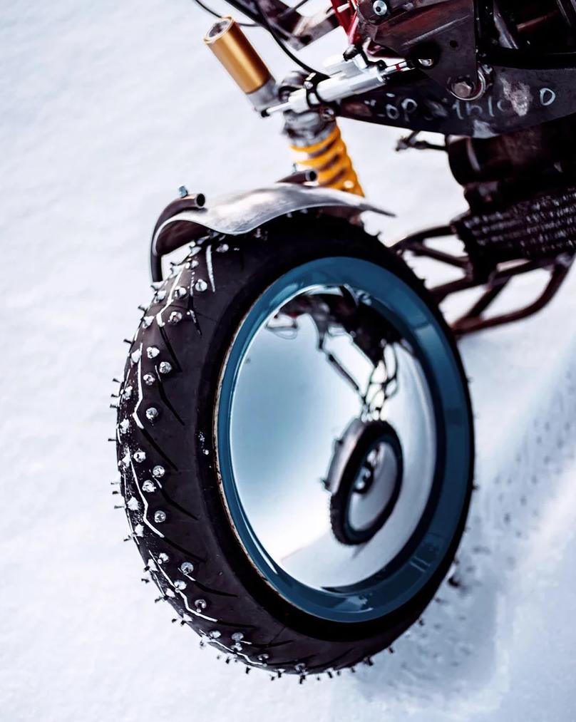 “Yondu”的改裝目的是為了參加在西伯利亞地區舉行的的貝加爾湖冰面加速賽(Baikal Mile),為此輪胎的選擇至關重要,配備鑲嵌了鋁合金螺釘的釘胎,可以牢牢抓緊貝加爾湖的冰雪表面。駕駛這樣一臺古怪的雪地猛獸奔馳在白茫茫的冰天雪地之中,是不是更加有了末世流浪的感覺呢?