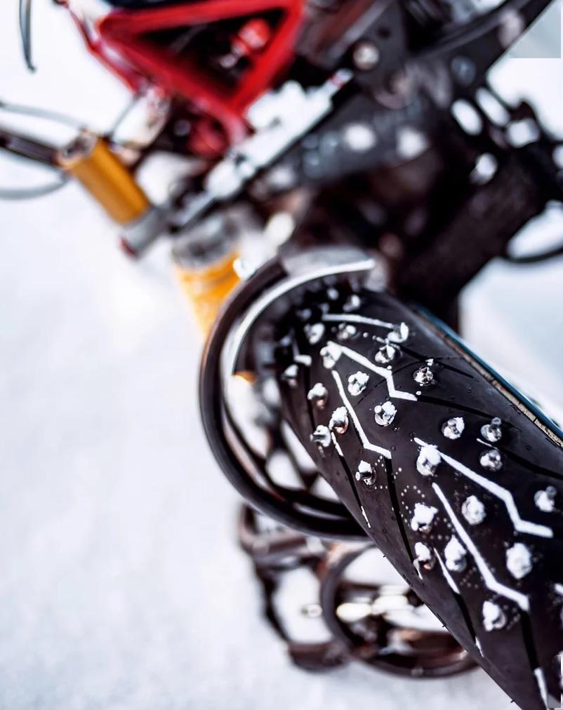 看著這臺被改的面目全非的“ Hypermotard 1100”,只能從側面標志性的紅色鋼管車架、后輪的單搖臂結構以及經典的風冷90°V型雙缸發動機中,看出一絲僅存的杜卡迪意式激情,曾經的Supermoto王者化身為個性十足的雪地猛獸。