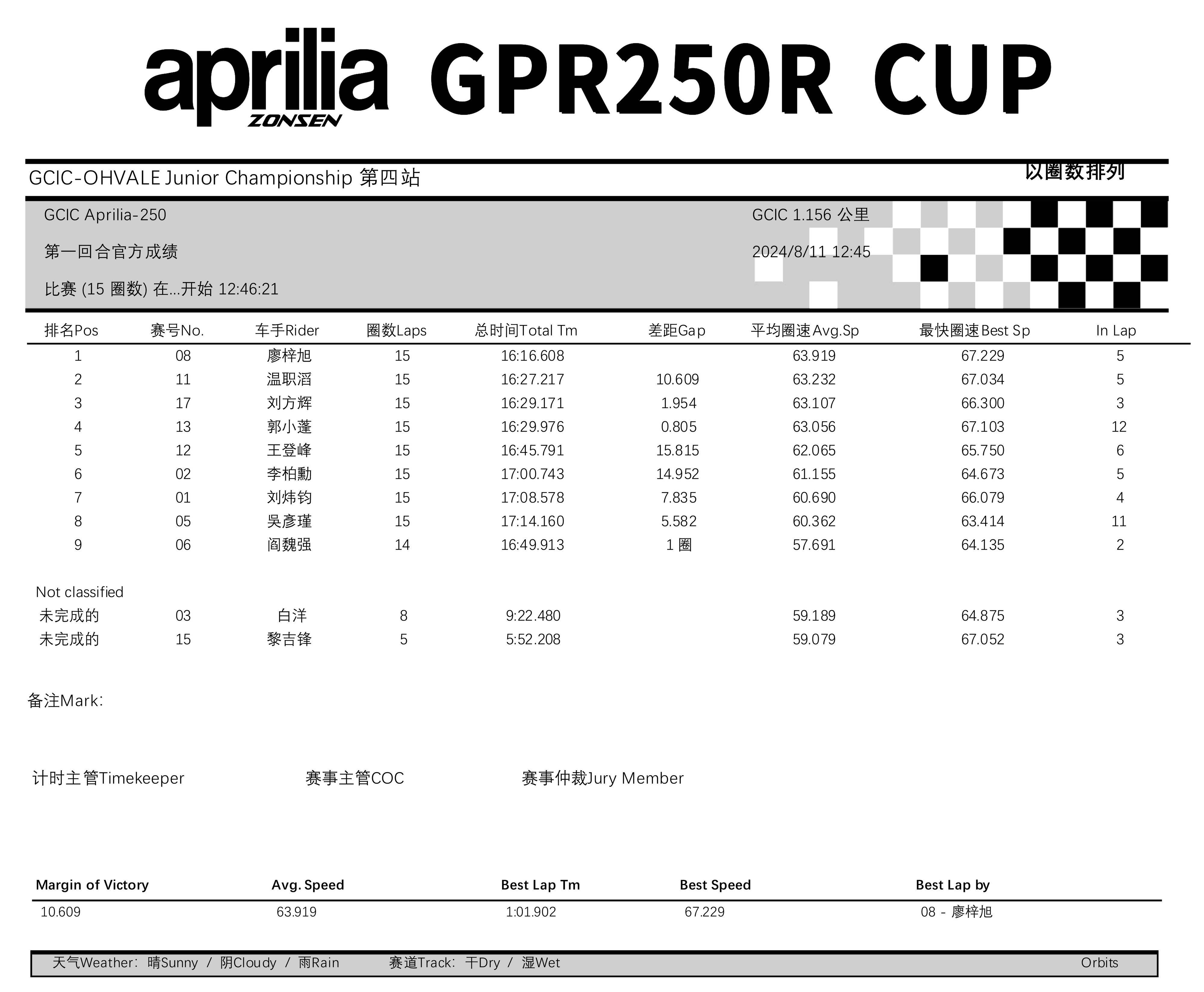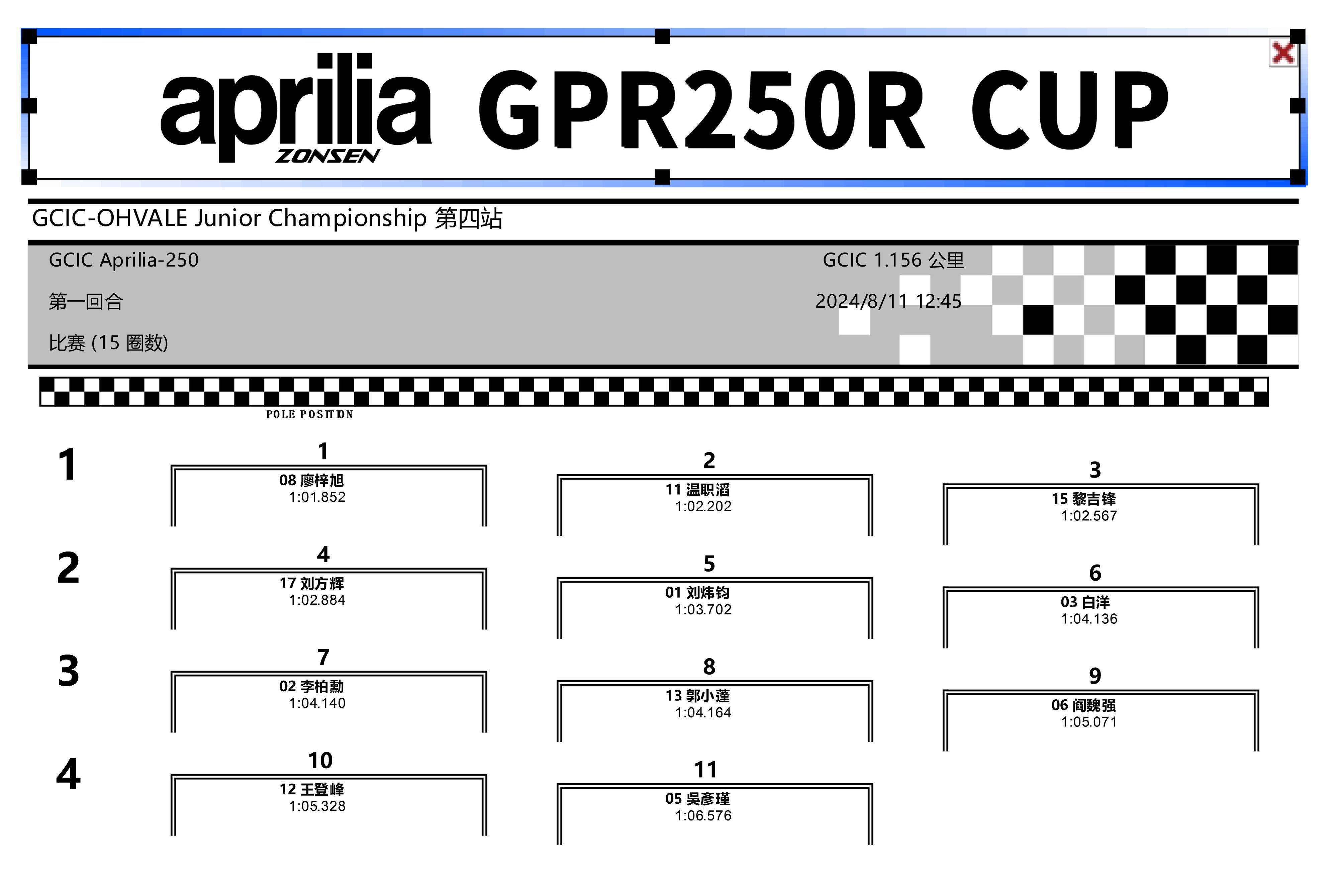3、Ohvale GP-0 160 組:58.627 秒(新紀錄,黃霆諾);