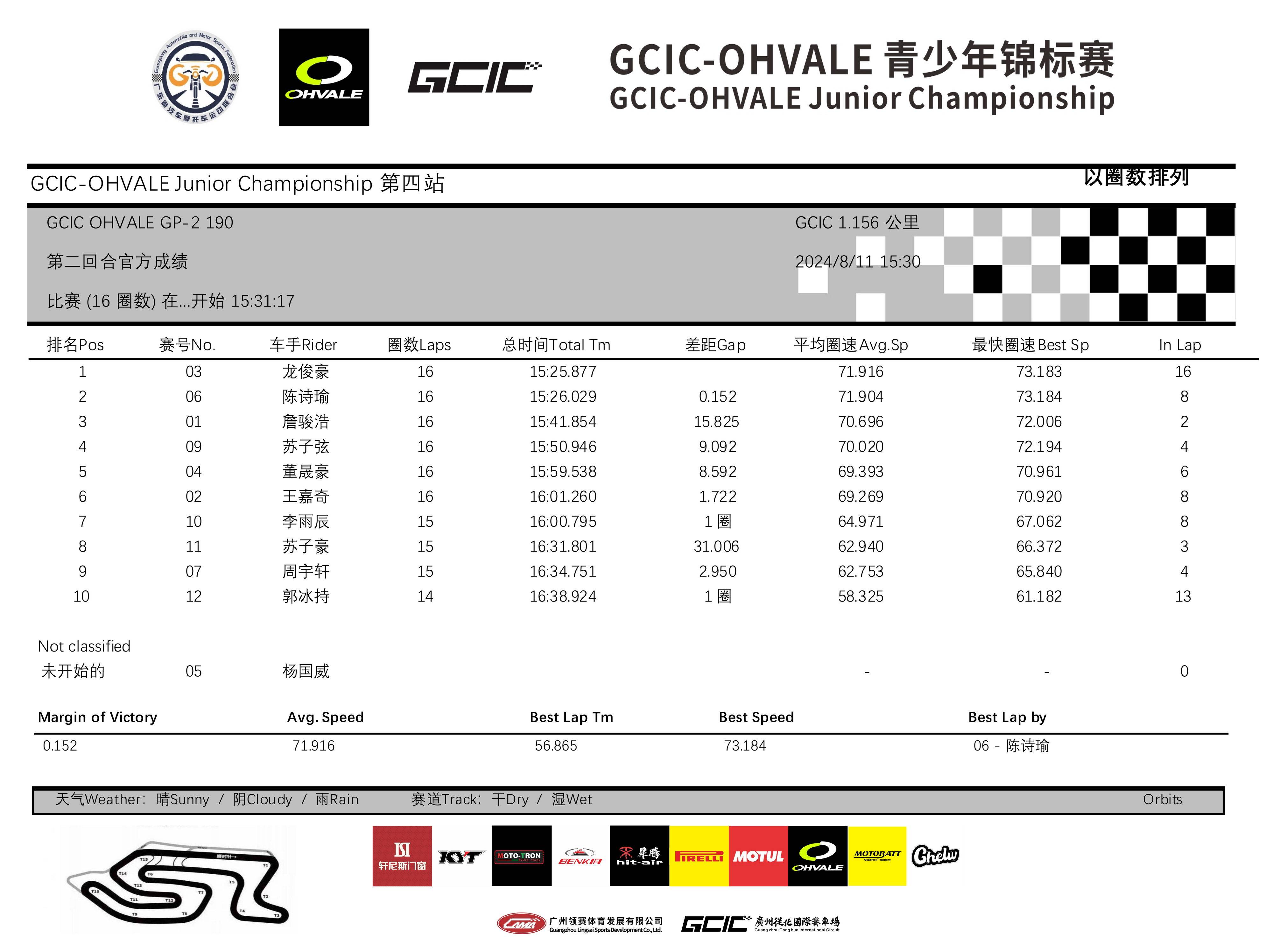 4、Ohvale GP-2 190 組:55.85 秒,伊凡(Qabil Irfan Bin Azlan),馬來西亞;中國車手 56.865 秒(新紀錄,陳詩瑜);