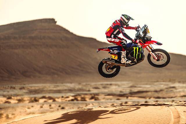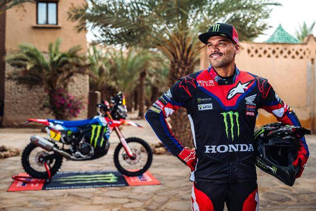 2、駕駛 9 號車的美國車手巴拉貝(Ricky Brabec),他為 HRC 奪得了兩次達喀爾拉力賽摩托車組的冠軍(2020、2024 年);