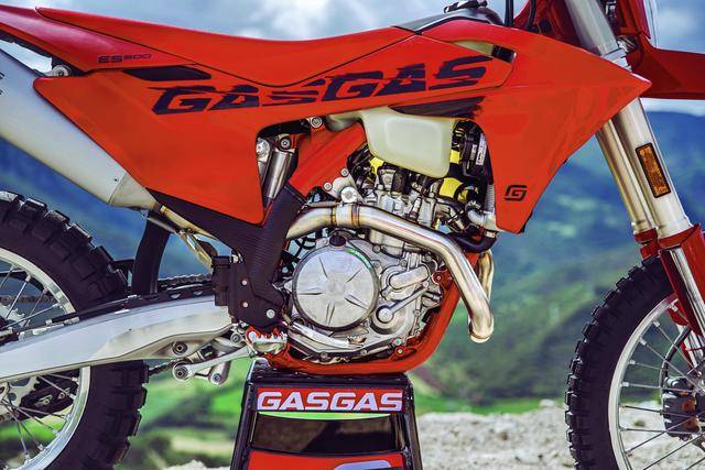 ES 500 搭載一副由 MC 450F 延伸而來的四沖程單氣缸、SOHC 四氣閥的發動機,缸徑、行程為 95 mm x 72 mm,排氣量 510.9 cc;與 350 機器一樣,采用了電子燃油噴注系統、六檔的變速齒輪箱、電啟動以及油壓離合器、左右雙散熱水箱。同樣地、廠方未公布該車的最大馬力輸出數字,參考場地越野賽車規格的 450 SX-F、最大馬力輸出達 63 匹,這個可上牌的 Enduro 版本車型,其峰值馬力輸出預計不高于 60 匹。