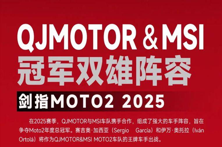 2025 賽季,QJMOTOR MSI 車隊敲定了塞爾吉奧?加西亞(Sergio Garcia)和伊萬?奧爾托拉(Ivan Ortola)的雙西班牙車手陣容。這兩位車手實力強勁,能夠預見的是25年的賽場,QJMOTOR定能展現出強勁實力,對于我們普通車友來講,未來能夠看到中國車手登上領獎臺,能夠以更親民的價格買到搭載GP賽事級別技術的量產車,未來可期,期待QJMOTOR的表現。