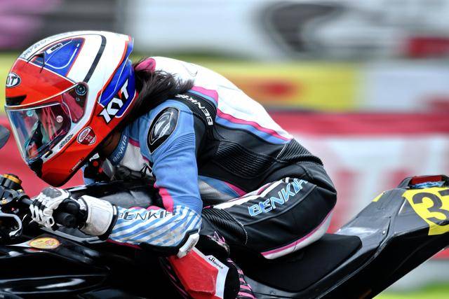 賽前的排位,李雨辰以 58.007 秒的個人最佳圈速,排在了全場的第七位發(fā)車。第一節(jié)比賽在濕地之下展開,憑借著穩(wěn)定的節(jié)奏,李雨辰奪得了全場和組別的第三名;第二節(jié)比賽,成為領(lǐng)先集團里一份子的李雨辰、是比賽里的焦點之一,在這次接近一半車手因為各種狀況而退賽的追逐中,李雨辰在第 9 圈也發(fā)生了摔車,被迫退出了比賽。第二節(jié)比賽里,她跑出了 57.201 秒的個人最佳圈速,比排位賽時快了不少,但對于一個騎乘全尺寸賽車的新手來說,大幅的增速、對極限速度的不斷探索,往往也意味著更高的摔車風(fēng)險。