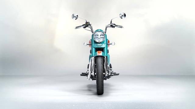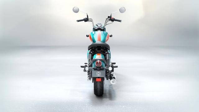 與標準型相比,果阿版 2025 Goan Classic 350 的焦點,無疑是其色彩鮮艷的車手圖案/貼花,這一色彩風格,讓人很容易就會聯想到印式的南亞色調。除了下面圖片的 Trip Teal “ 迷幻藍綠色 ” 之外,面向美國市場的果阿版,另有一個 Rave Red“ 狂歡紅色 ” 供客戶選購。