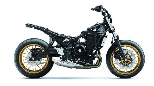 車體采用一副鋼管式的車架,行程為 125 mm 的正立式前叉、行程為 130 mm 的單筒式后減震;圓形風格的 LED 前大燈、雙筒式風格的指針式儀表板,容量為 12 公升的油箱等。而有著一個上世紀七十年代車型的外觀造型,是 Z650RS 的標志性亮點。電子輔助控制系統方面,標配了 ABS 和兩個模式可選的 KTRC 牽引力控制系統。