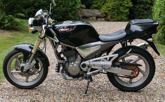 你可以把Goose 350想象為DR 350 S和RGV 250的混搭——動力心臟來自DR 350 S的油冷單缸發(fā)動機,但是針對公路跑車定位做了修改;前叉、車輪、制動等則來自鈴木自家的二沖程戰(zhàn)馬RGV250。同時,配置了鋼管車架,尾罩則是英倫古典跑車式的駝峰,并呈現(xiàn)出強烈的NK風(fēng)味——不錯,現(xiàn)在大行其道的NK,鈴木早在30年前就玩得溜溜的!