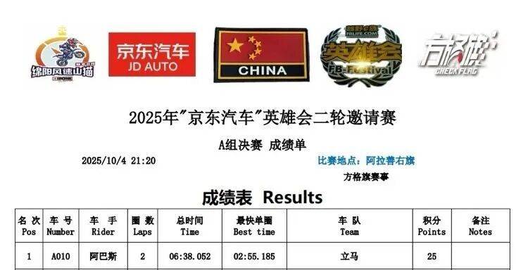 |2025年“京東汽車“英雄會二輪邀請賽A組決賽成績單