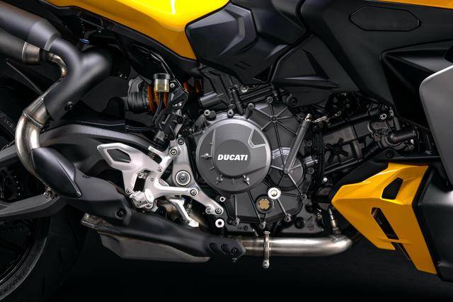 現(xiàn)行的 2025 Panigale V2 跑車搭載一副全新開發(fā)水冷四沖程 V 型 90 度兩氣缸、DOHC每氣缸四氣閥,帶 IVT 可變進(jìn)氣閥正時控制的發(fā)動機(jī),缸徑、行程為 96 mm x 61.5 mm,排氣量 890 cc,最大動力輸出 88 kw(約 120 匹)。面向賽道的應(yīng)用,廠方同步推出了原廠的賽車排氣系統(tǒng),換裝之后的峰值馬力輸出提高至 126 匹,重量也進(jìn)一步再降低 4.5 公斤。