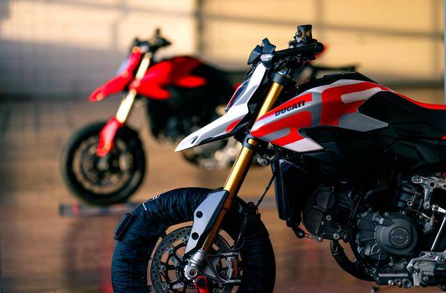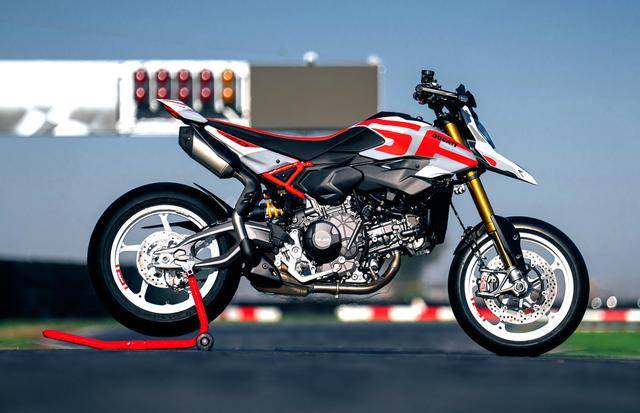 其他方面,包括了 5 英寸的 TFT 數(shù)字式儀表板,880 mm 的標準鞍座高度(可選裝 865 mm 低座高鞍座,而現(xiàn)行的 Hypermotrad 950 為 870 mm),更長的 1514 mm 標準軸距(Hypermotard 950 為 1493 mm),容量為 12.5 公升、全新設(shè)計的油箱(950 的油箱容量為 14.5 公升),不含燃料之下的全車整備重量分別為 180 公斤(標準款。現(xiàn)行的 950 標準款為 193 公斤)、177 公斤(SP 版。現(xiàn)行的 950 SP 版為 191 公斤)。
