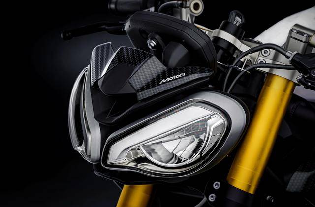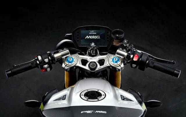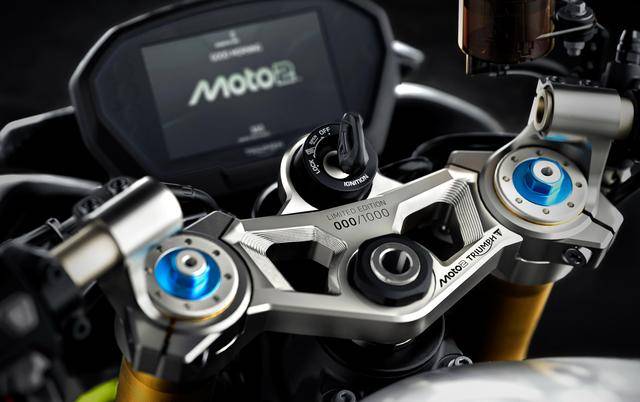 4、只生產 1000 輛的 Moto2 限量版,在上三星刻有限量的編號;消聲器尾部、和有著更好附著力的定制鞍座上,也有著 Moto2 的字樣;換裝了透鏡式設計的后剎車燈組;換上了更多碳纖維制的、有著賽車風格的前輪擋泥板、側板、發動機底部整流罩和消聲器尾部外蓋;