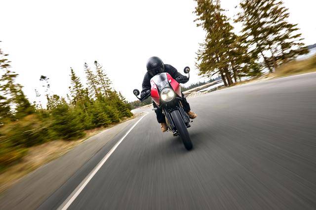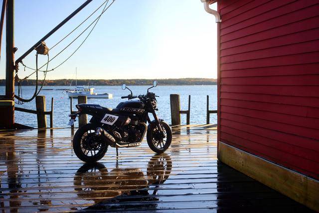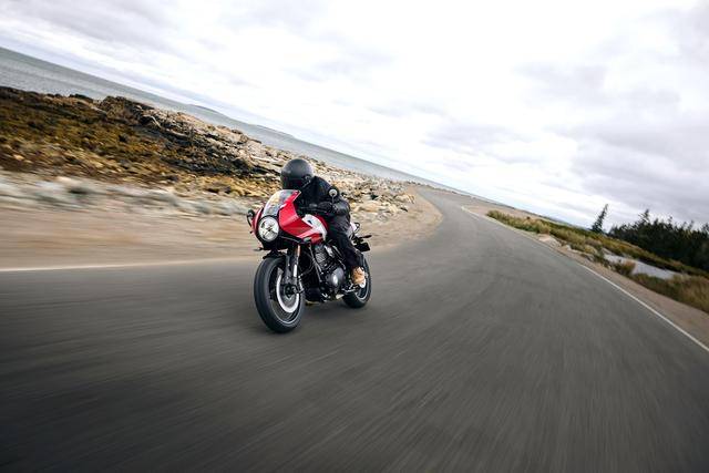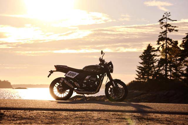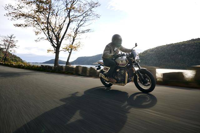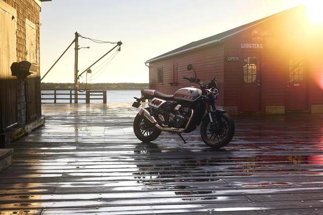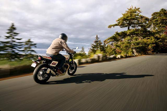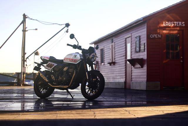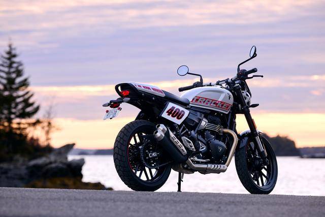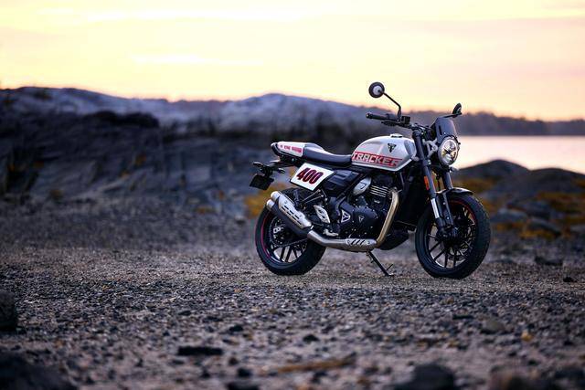 而 Tracker 400 則采用了 Flat Track 泥地賽車的外觀風格和騎行姿勢,車身的數字 400、意為向傳奇的泥地賽車手致敬;懸掛系統方面,采用叉芯口徑為 43 mm、標準行程為 140 mm 的倒立式前叉,標準行程為 130 mm 的單筒式后減震;805 mm 的鞍座高度,1371 mm 的標準軸距,雙出氣口的消聲器,標配了塊狀表面的 Pirelli倍耐力 MT60 RS 越野輪胎。