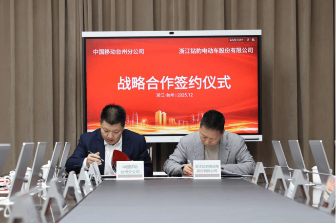 12月16日,浙江鉆豹電動車股份有限公司與中國移動臺州分公司正式簽署戰略合作協議。通信科技巨頭與電動車豪強企業的強強聯合,共同錨定電動兩輪車產業的智能化未來,開啟了“制造”與“智造”深度融合的新篇章。