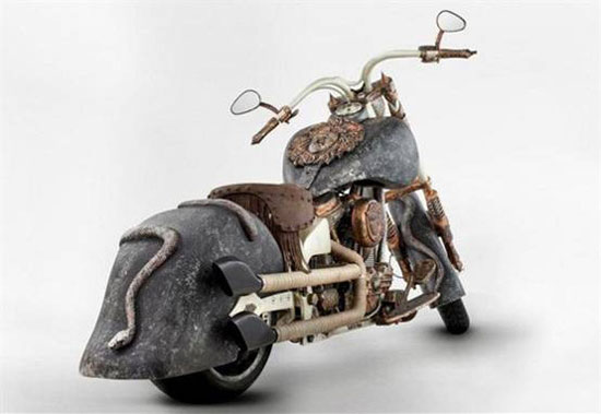 接觸過圖中這臺摩托車的人都承認它有兩種魔力,一方面是難以置信的售價,僅這臺摩托的黃金車架的造價就高達100萬美元;另一方面是這臺摩托的蒸汽朋克造型。這里小編提醒大家,不要拿什么杜卡迪、雅馬哈過來比較,這里我們不比速度,請大家戴好防強光護目鏡,讓我們用欣賞的眼光繼續閱讀。